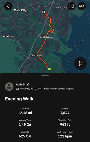 5.0 miles of running/Walking = 5.0 milesBeautiful night